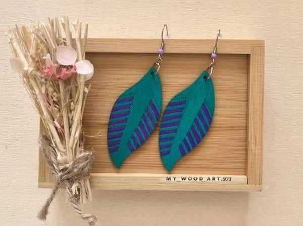 Boucles d'oreilles colorées en bois.
